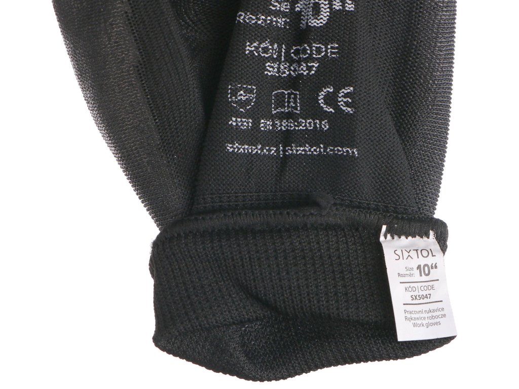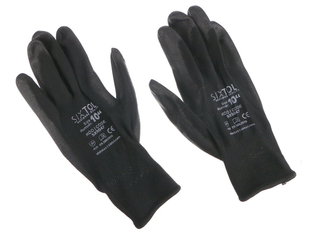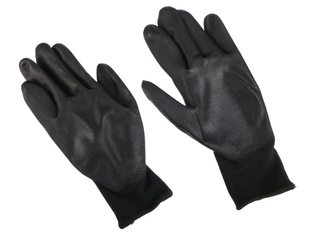 Polyesterové pracovné rukavice, polomáčané polyuretánom, čierne, veľkosť 10", 1 pár