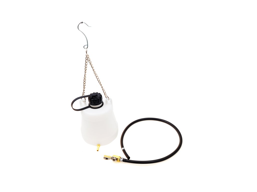 Pomocná benzínová nádrž s retiazkou na zavesenie. Nádobka pre palivo je vhodná pre ladenie motorov, pri práci s demontovanou nádržou.