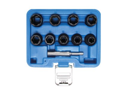 Hlavice nástrčné 1/2", 8-27 mm, special, 16 ks Chróm molybdénu. Špeciálny profil pre poškodené matice a skrutky. Vhodné pre bezpečnostné skrutky kolies pri strate...