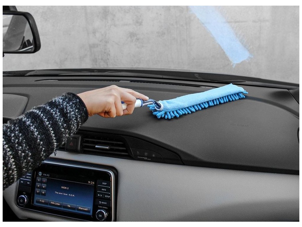 Veľmi praktická a kvalitné prachovka (handričku), určená pre čistenie interiérových častí vozidiel. Jedna strana je rovná, na druhej sú mäkké štetiny pre dokonalé odstránenie prachu a ďalších nečistôt. Vďaka veľmi dlhej konštrukciu s veľkou pracovnou časťou a rukoväťou sa s ňou veľmi ľahko a rýchlo pracuje - na jedno až dve zotretie očistí celú palubnú dosku.