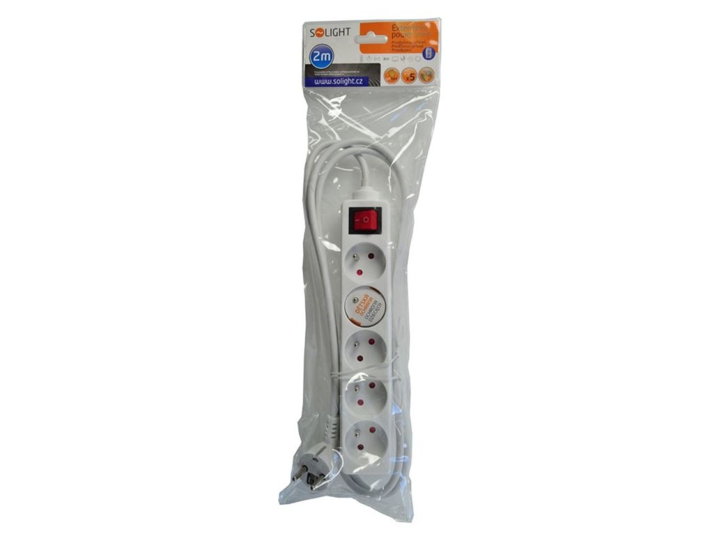 Predlžovací kábel 3x1 mm2, 2 m, 5 zásuviek, vypínač – SOLIGHT PP51