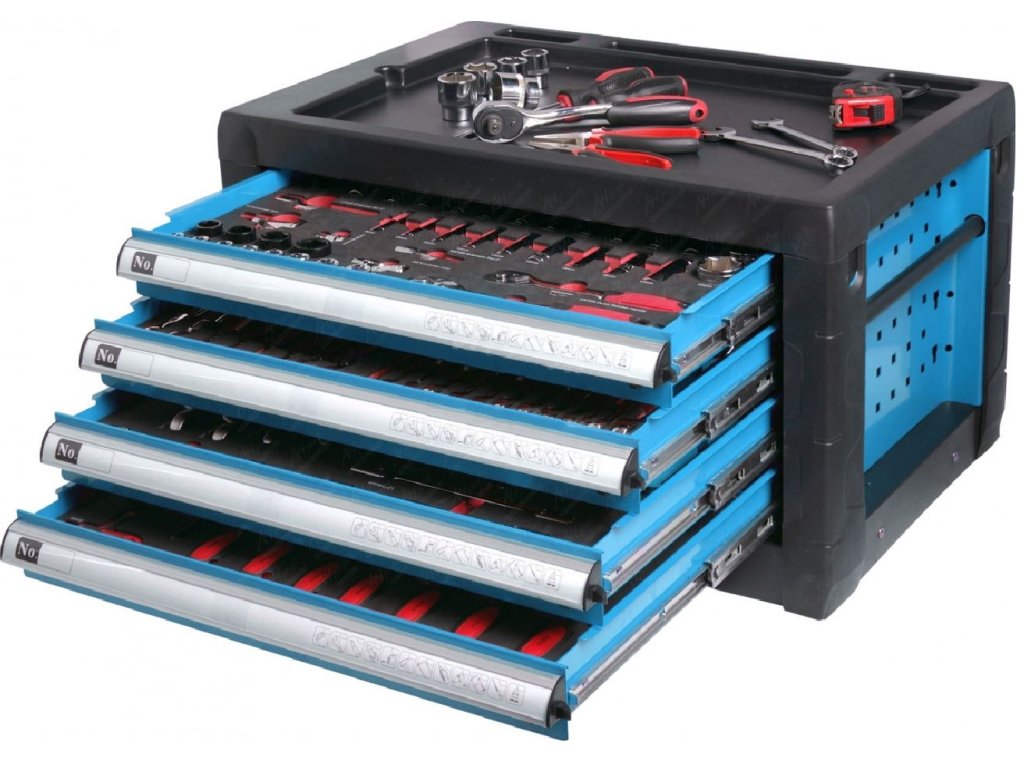 Profesionálny nábytok do autoservisu, dielne či priemyselnej prevádzky, na uskladnenie náradia. Možno umiestniť na dielenský stôl (ponk) a pod.