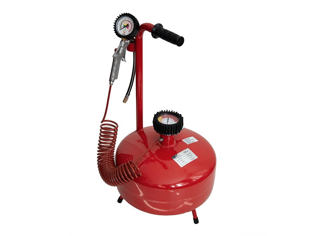 Mobilný - prenosný pneumatický nafukovač s 15 l nádržou, maximálny tlak 10 barov, s pištoľou a manometrom