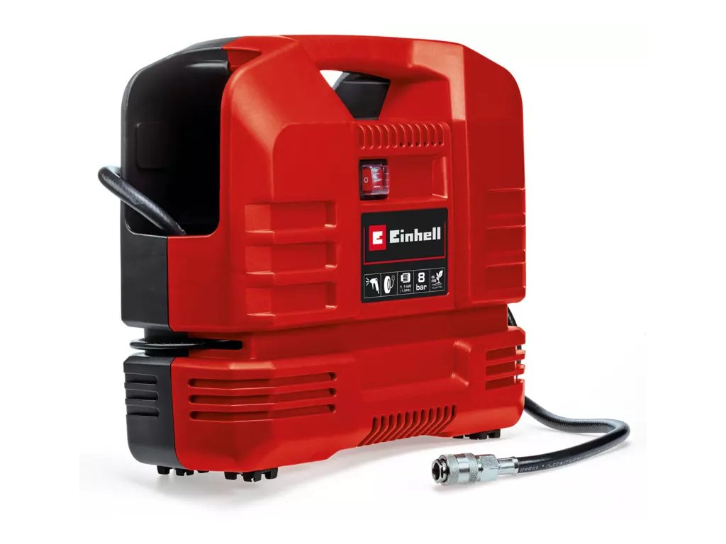 S prenosným kompresorom Einhell TC-AC 190 OF Set budete vždy pripravení na širokú škálu praktických úloh. Tento vysoko výkonný vzduchový kompresor s plochým dizajnom sa ľahko používa, je užívateľsky prívetivý a vhodný do dielne a garáže, ako aj do záložného vozidla. Je ideálny na hustenie pneumatík, vyfukovanie bazénov alebo matracov alebo čistenie pracovných plôch pomocou fúkacej pištole.