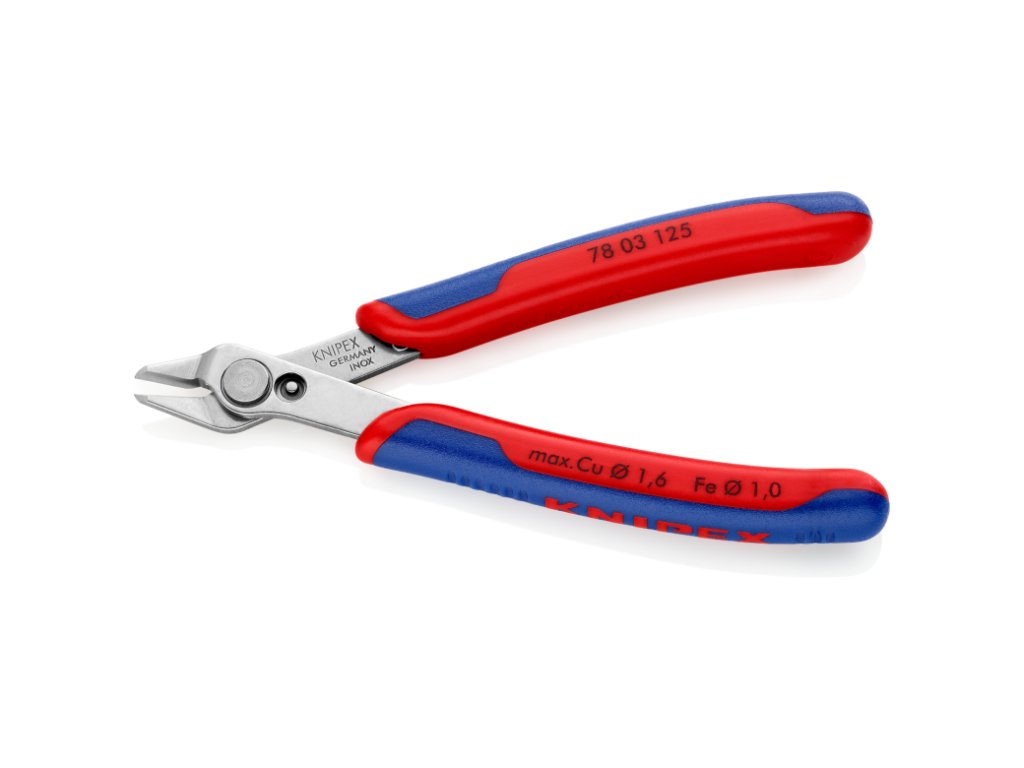 Precízne štiepacie bočné kliešte pre elektroniku a jemnú mechaniku, na tenké drôty od priemeru 0,2 mm - KNIPEX 78 03 125.