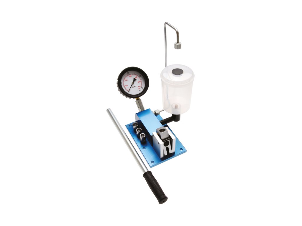 Pre zistenie tlaku paliva vstřikovačů.Určen pre všetky vstrekovače okrem CDI a PD jednotky.Lze testovať: zatváracie tlak, formu rozstreku paliva, tesnosť trysiek, tvar lúča, akustická kontrola.Měřící rozsah manometra 400 bar.Včetně 1 pripojovacieho potrubia a 3 adaptérů.Nádobka na palivo s integrovaným jemným filtrom.