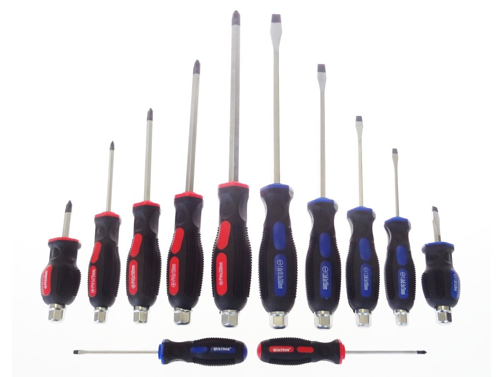 Skrutkovače sú pre jednoduché a rýchle rozpoznanie farebne odlíšené: červené (krížové) a modrej (ploché)