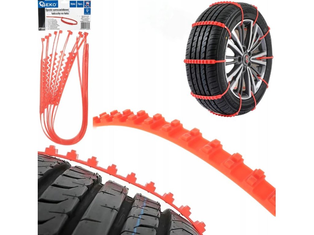 Protišmykové pásy na bicykel - snehové reťaze, opakovane použiteľné, sada 10 ks