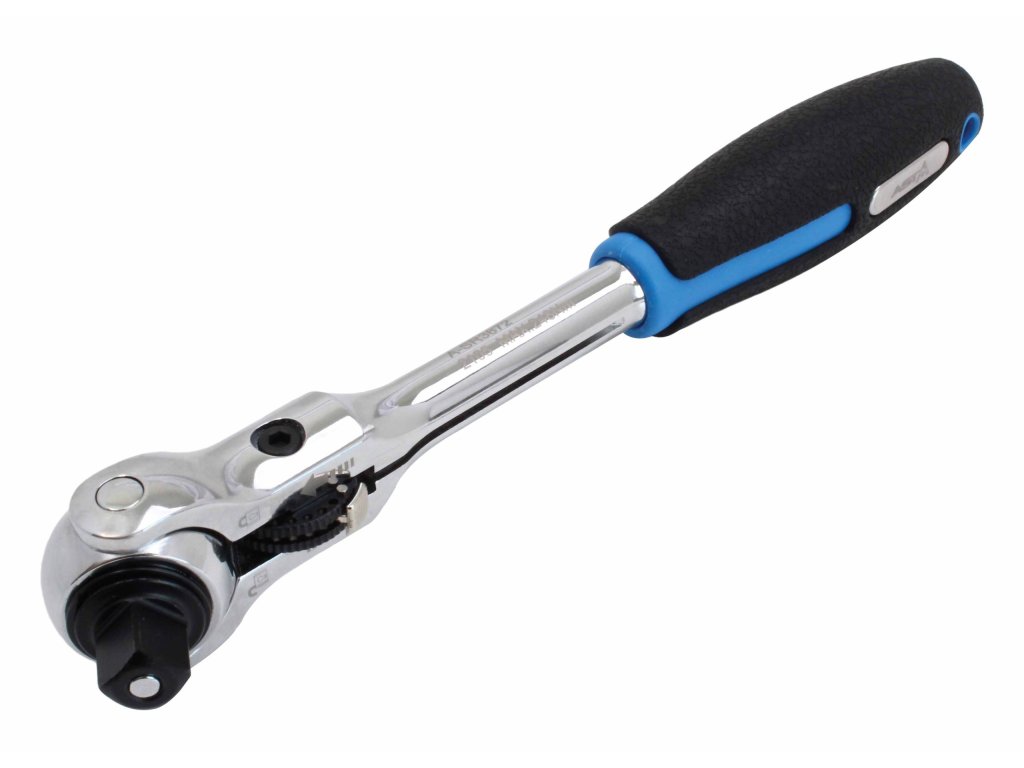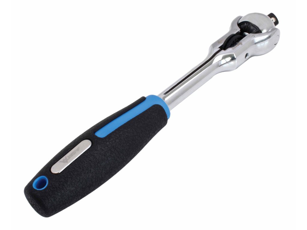 Špeciálny račňa určené pre prácu v stiesnených priestoroch. Vďaka výkyvné otočnej hlave možno používať štandardným spôsobom (tzv. Naplocho), ale aj šikmo či tzv. Ako skrutkovač (zvisle). Hlavu možno v požadovanej polohe uzamknúť.