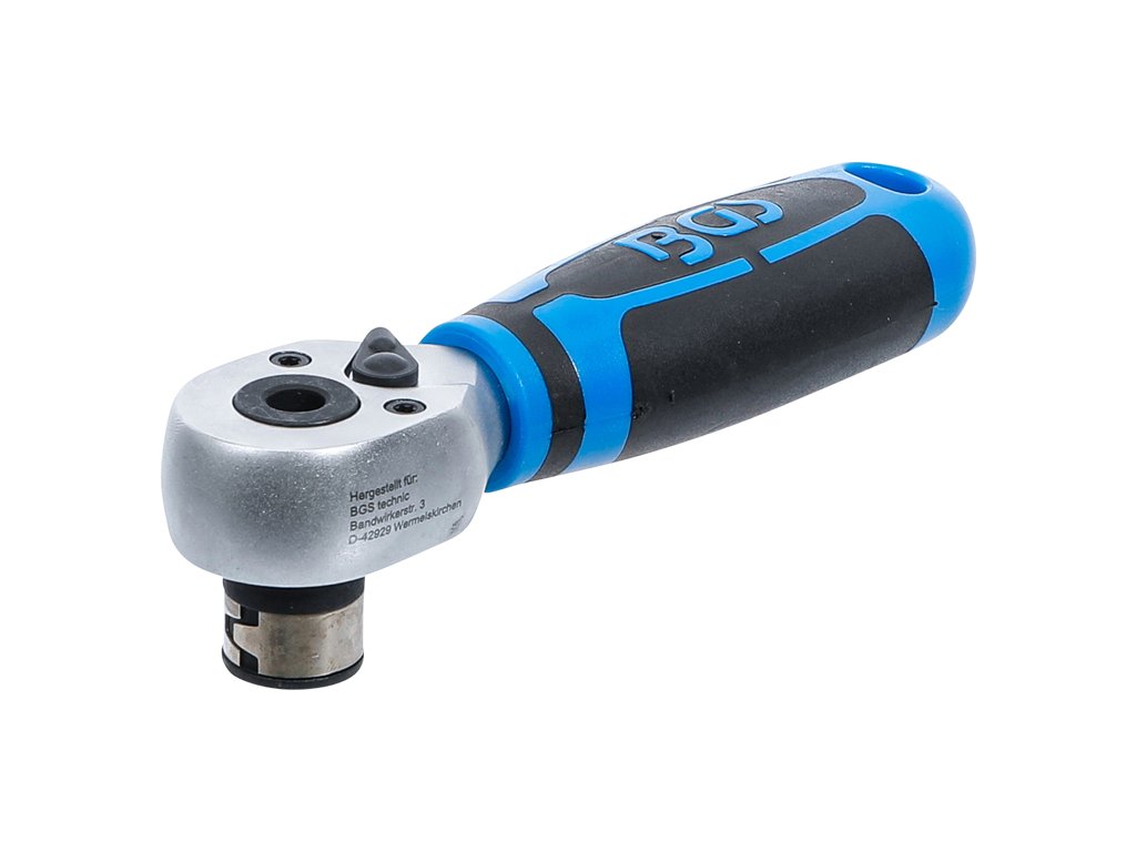 Kompaktná račňa na použitie so stopkami bitov. Chod sa prepína vľavo-vpravo pomocou páčky v hlave nástroja.