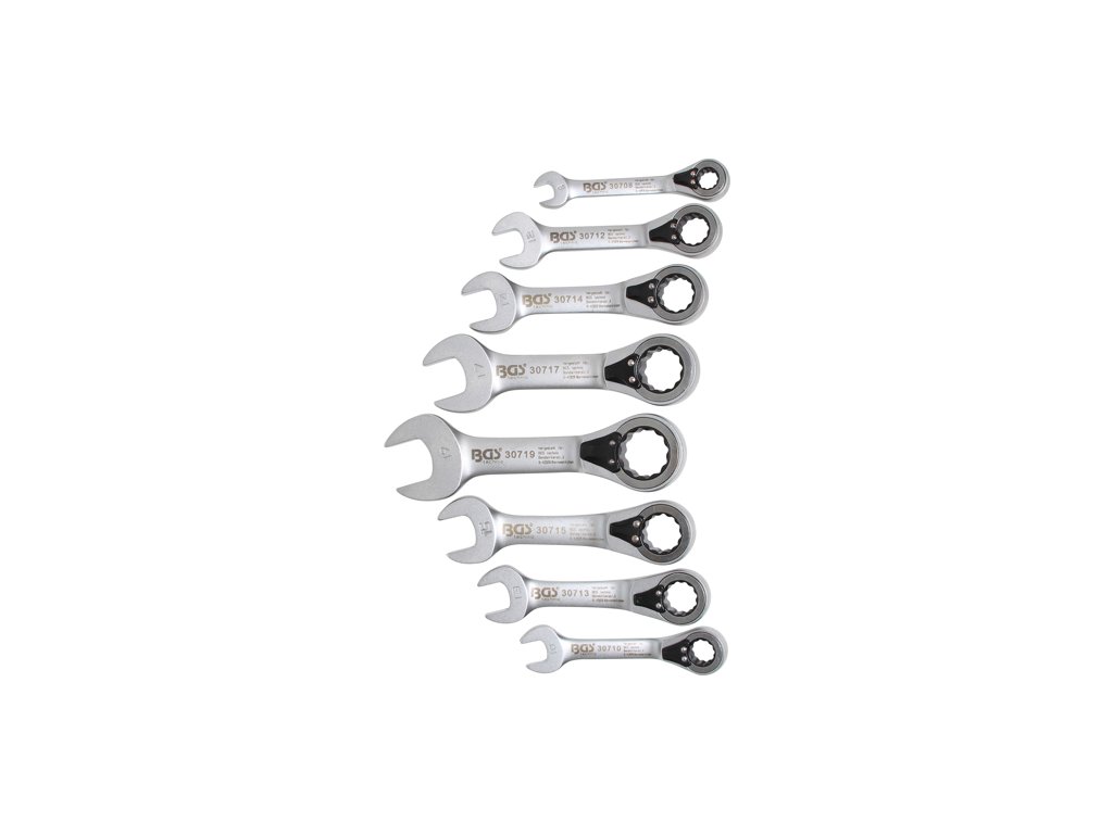 Ráčnové kľúče 8-19 mm, extra krátke, sada 8 kusov v balení - BGS 30720