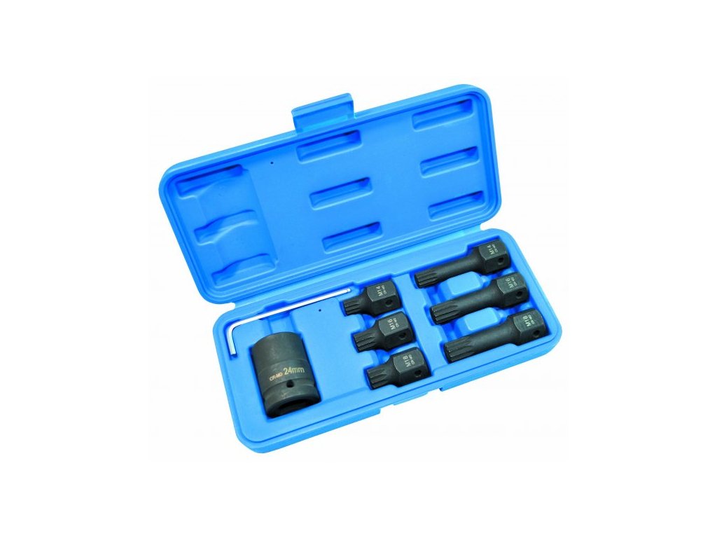 Úderové bity XZN (Spline) 1/2", M14 - M18, s adaptérom na 3/4", sada 8 kusov