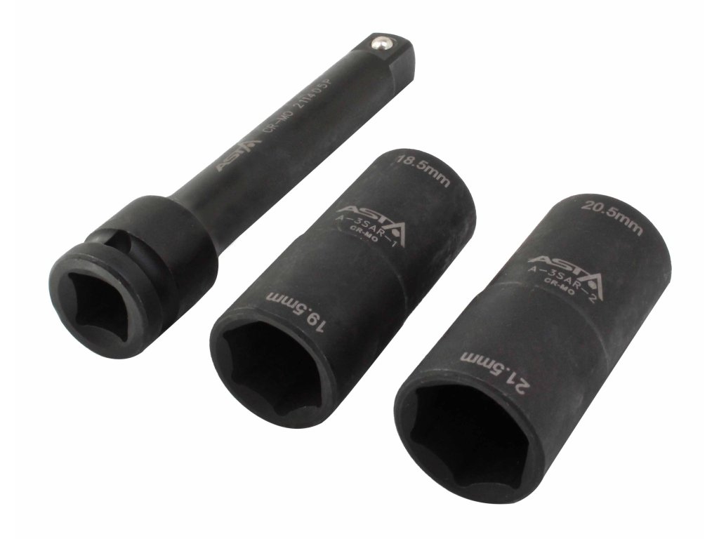Rázové nástrčné hlavice, obojstranné, pre ALU kolesá, rozmery 18,5 - 21,5 mm, 3 ks - ASTA