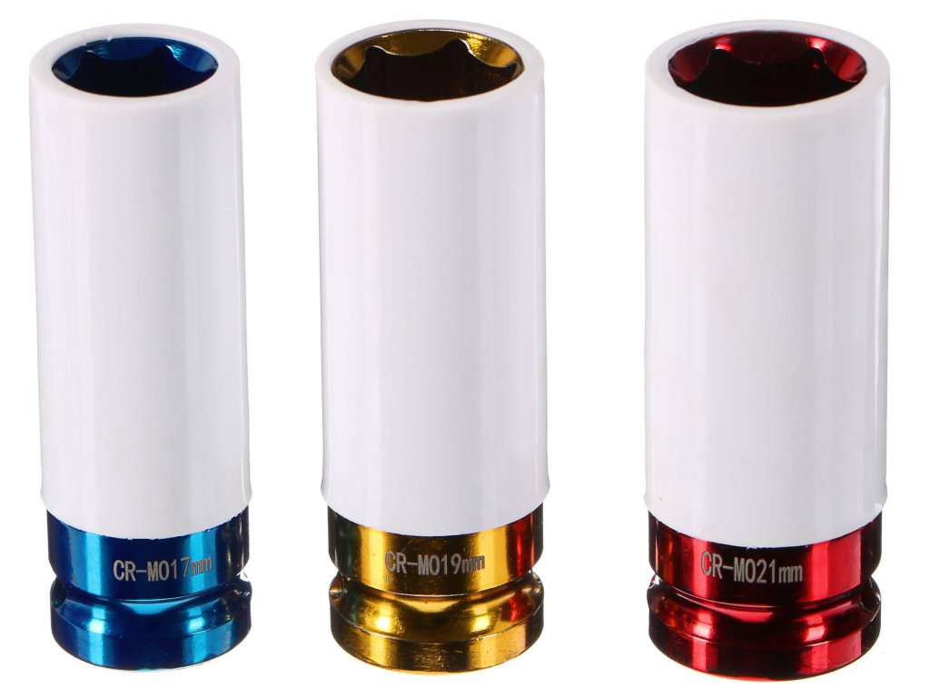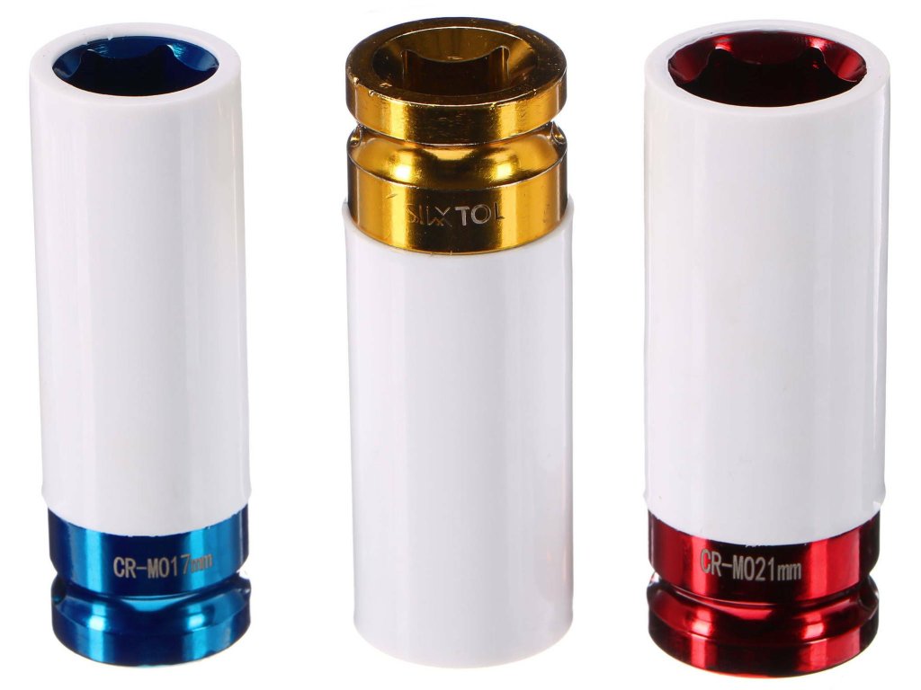Rázové nástrčné hlavice s krytkou pre ALU kolesá, 1/2", 17, 19, 21 mm, 3 ks - SIXTOL