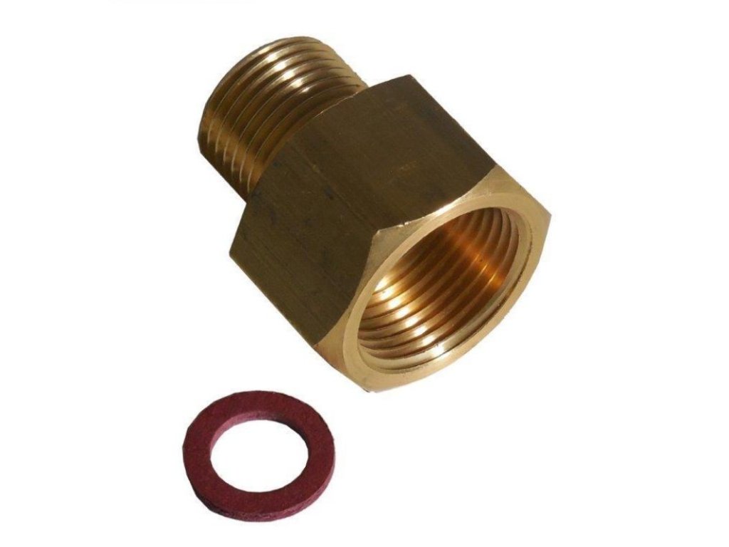 Mosadzná prechodka pre určená na pripojenie CO2 redukčného ventilu 3/4 na fľašu s dusíkom (závit W24.32 x 1/14).