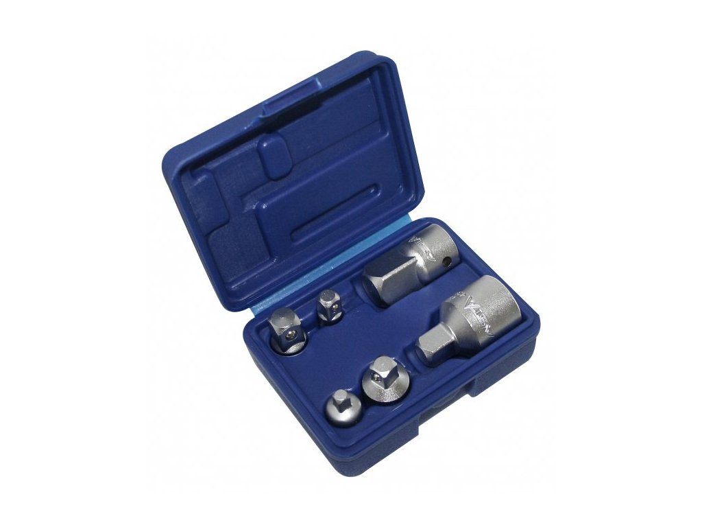 Redukcie štvorhrany 1/4", 3/8", 1/2", 3/4", rôzne adaptéry, súprava 6 kusov