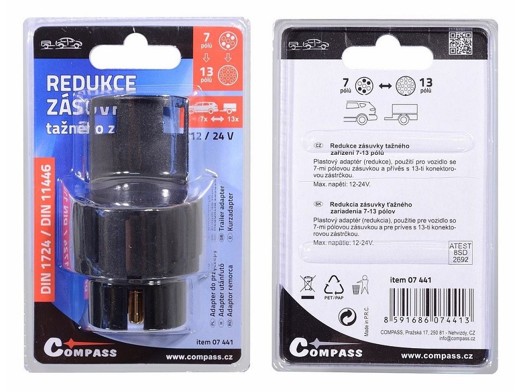 Adaptér (redukcia) pre 7pólovú zásuvku - rozšírenie na 13 pólov pre zástrčku prívesu či nosiča kolies, napätie 12-24 V - COMPASS 07441