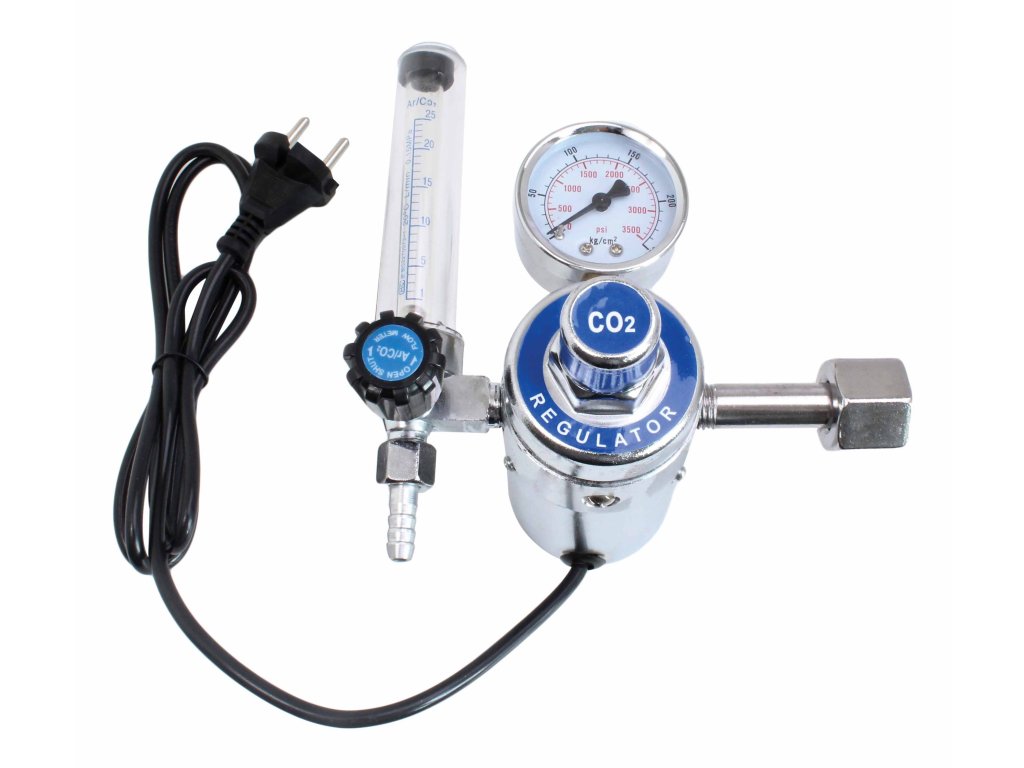 Redukčný ventil, tzv. „redukčák“, pre oxid uhličitý CO2 a Argón, s prietokomerom a elektrickým výhrevom proti zamŕzaniu – SATRA S-HER