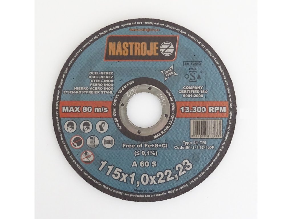 Kotúč rezný 115 x 1,0 x 22 mm, na oceľ a nerez