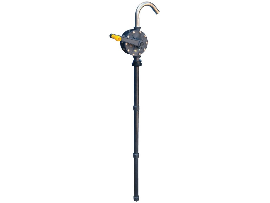 Ručné rotačné sudové čerpadlo z PPS s kľučkou a výtokovou hubicou pre čerpanie agresívnych chemikálií, kyselín, lúhov, benzínu, nafty, petroleja, olejov, etylalkohol atď. Zo sudov 60 l / 110 l / 210 l - Genborx RP-150RT