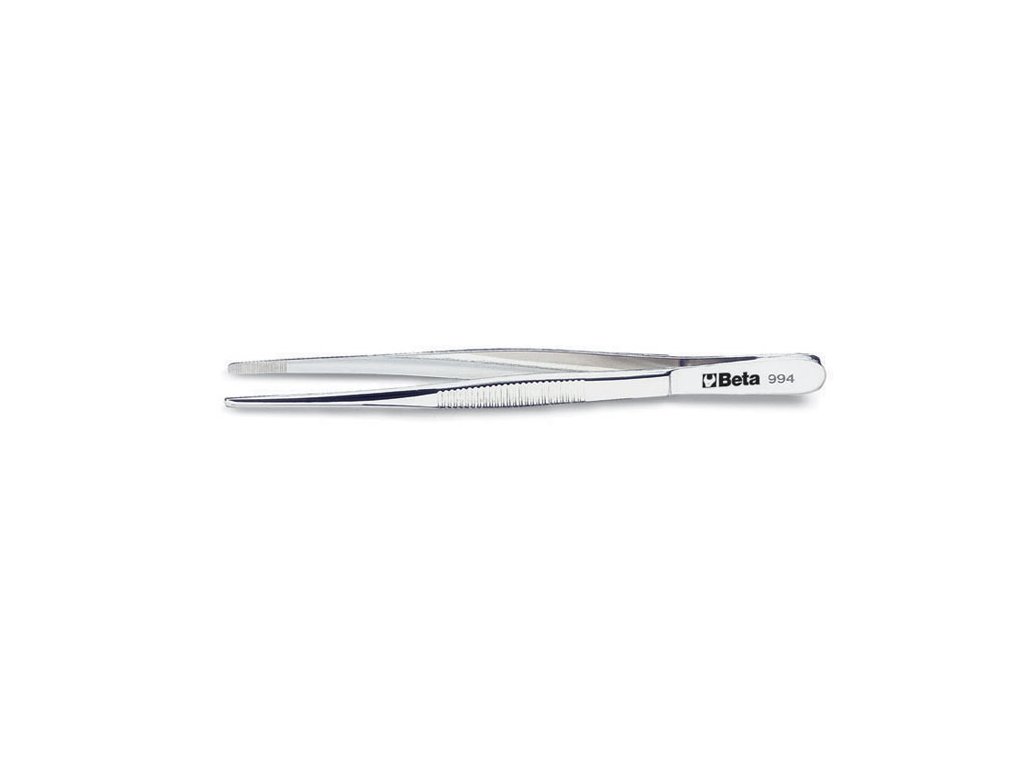 Rovná veľká pinzeta s vrúbkovaným hrotom z nehrdzavejúcej ocele s lesklým povrchom
