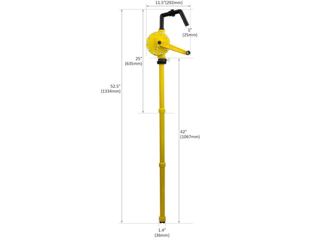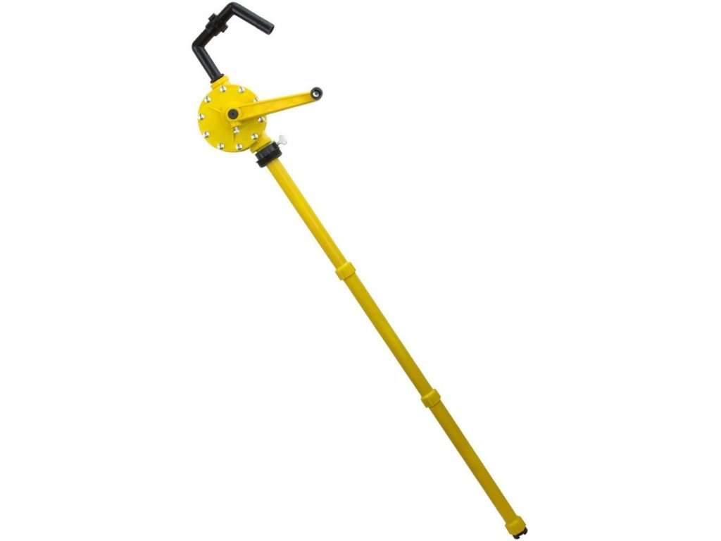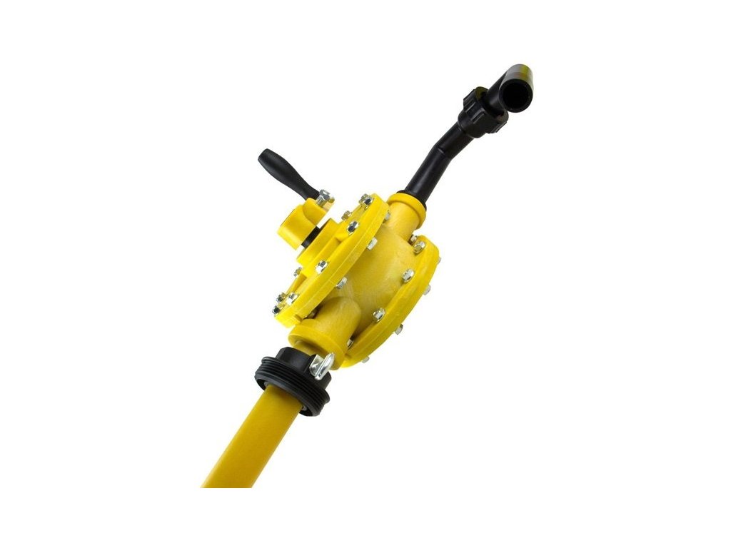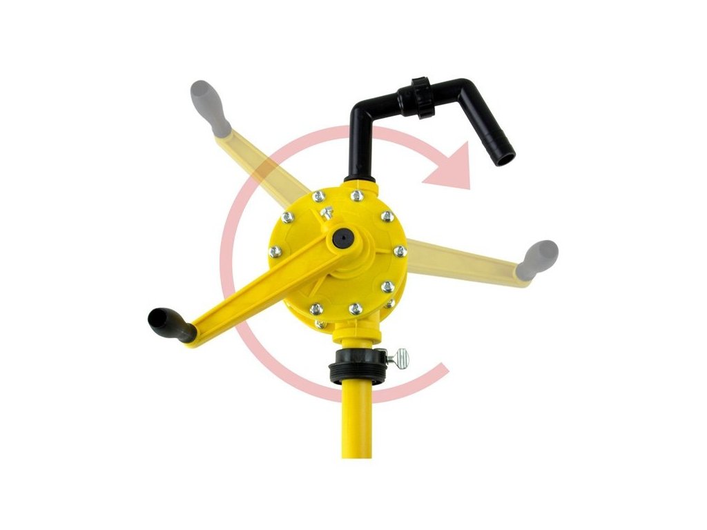 Ručné rotačné bubnové čerpadlo s kľukou a delenou výlevkou na čerpanie nafty, petroleja, strojového oleja, mazív s nízkou viskozitou, vody, chemikálií na báze vody, slabých kyselín a zásad zo 60 l / 110 l / 210 l sudov.