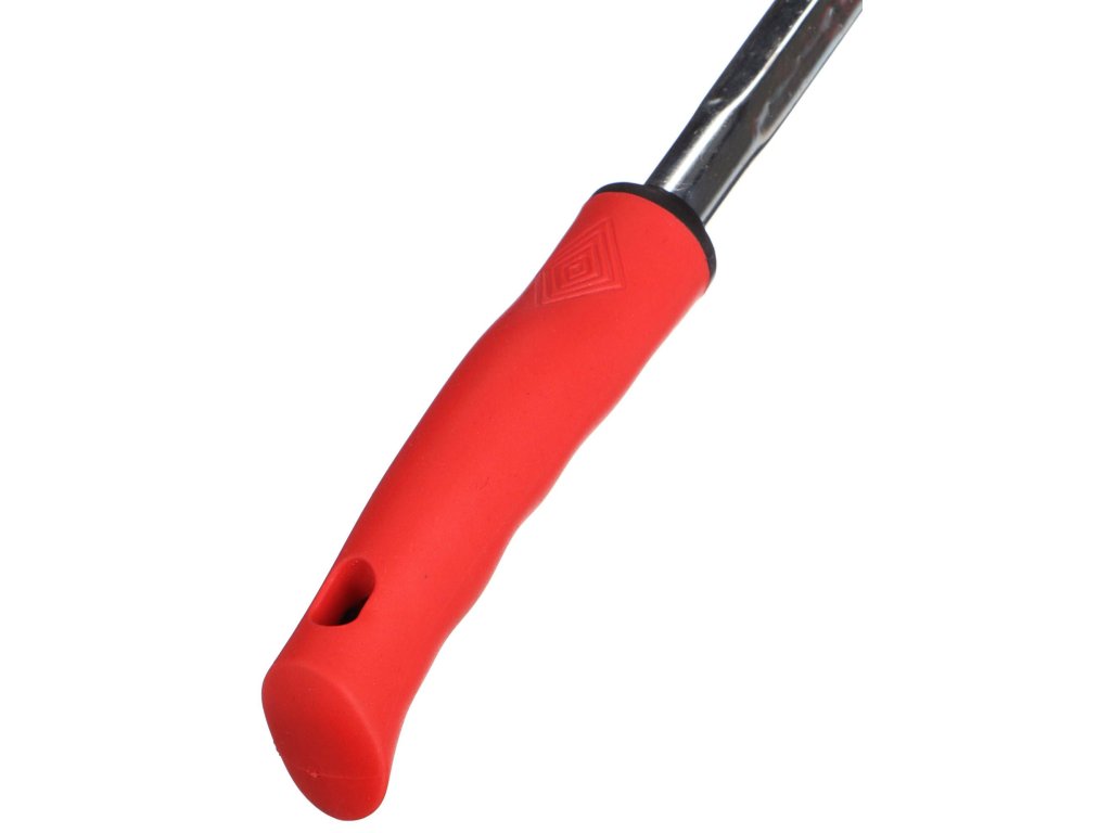 Rúčka je vyhotovená v červenej farbe pre dobrú viditeľnosť v zelenej farbe.