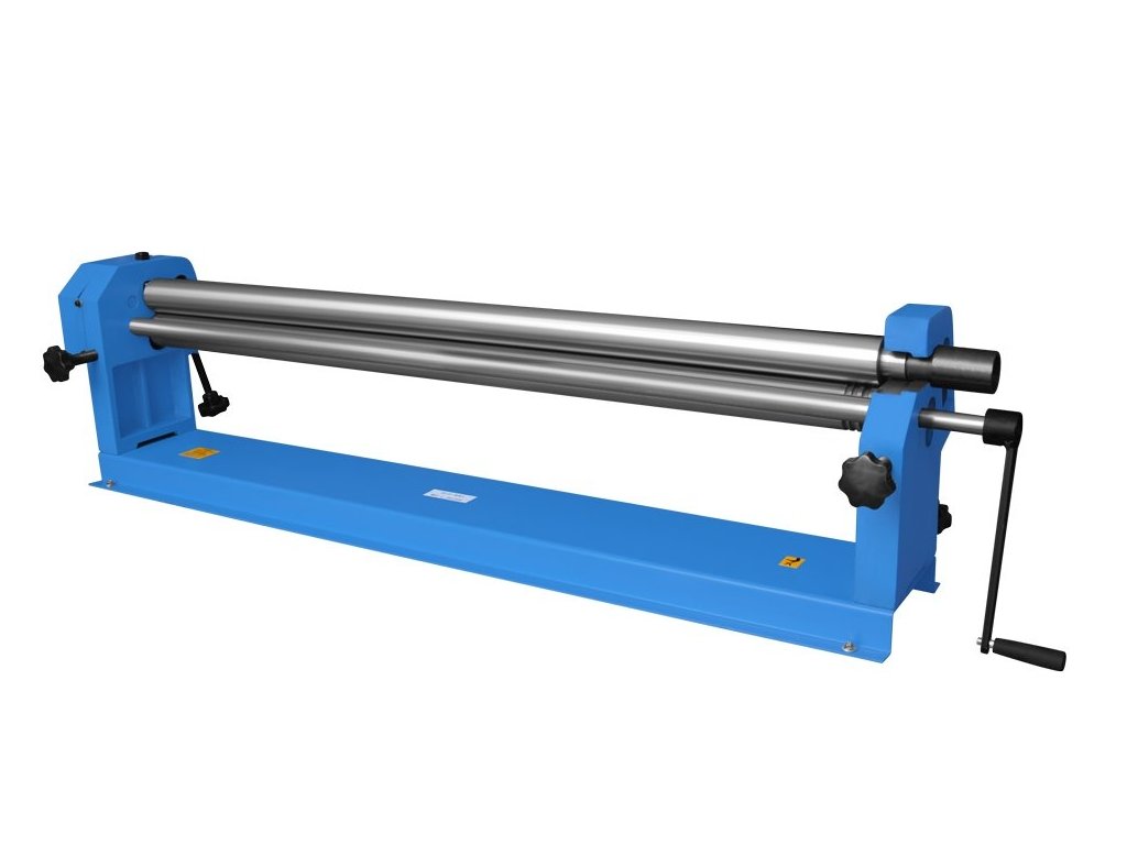 - praktický klampiarsky zakružovací stroj v prevedení Heavy-Duty na výrobu rúrok, valcov atď. stáčaním tabúľ plechu