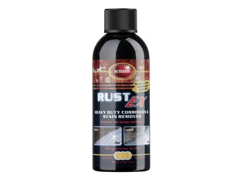 Rust Ex bol vyvinutý na údržbu skorodovaných povrchov na nerezu, chrómu, mosadze, medi a ďalších kovov. Špeciálne chemické zloženie účinkuje vo veľmi krátkej dobe. Kovy ošetrí a predĺži životnosť i ťažko zoxidovaných povrchov. Zloženie produktu zabraňuje poškodeniu čerstvo očisteného povrchu.