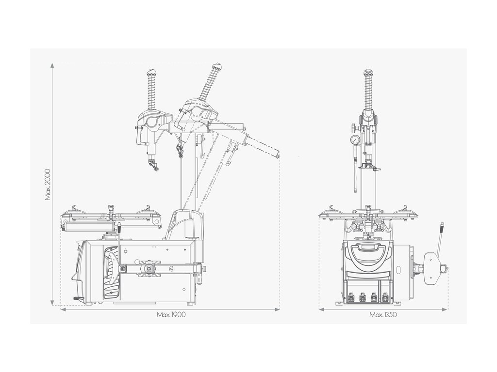 Automatický montážne stroj (ľudovo nazývaný vyzúvačka) pre montáž a demontáž pneumatík osobných a ľahkých nákladných vozidiel. Vďaka robustnej konštrukcii a kombinácii s Helper 390H sa výborne hodí aj pre prácu s nízkoprofilovými plášťami a pneumatikami so zosilnenou bočnicou (tzv. Run flat). Pri práci tzv. Neuhývá a drží tvar.