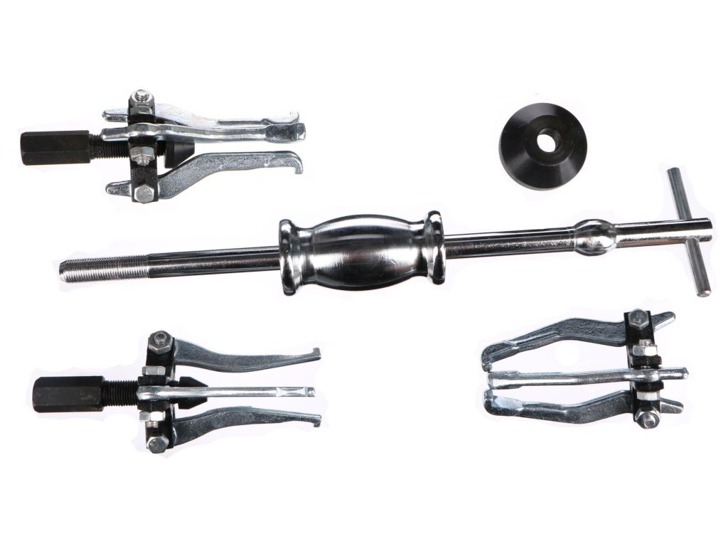 Súprava servisného 3-ramenného sťahováka s rázovým klzným kladivom na vyberanie ložísk zo slepých otvorov a výmenu ložísk v prípadoch, keď nie je možné použiť bežný sťahovák alebo hydraulické či mechanické piestové tesnenie.