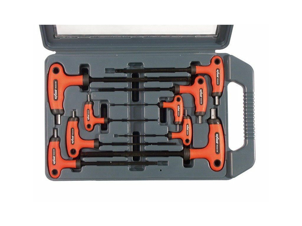 Sada 9 zástrčných kľúčov Imbus s guličkou a T rukoväťou v kazete, 2-10 mm, EXTOL-PREMIUM