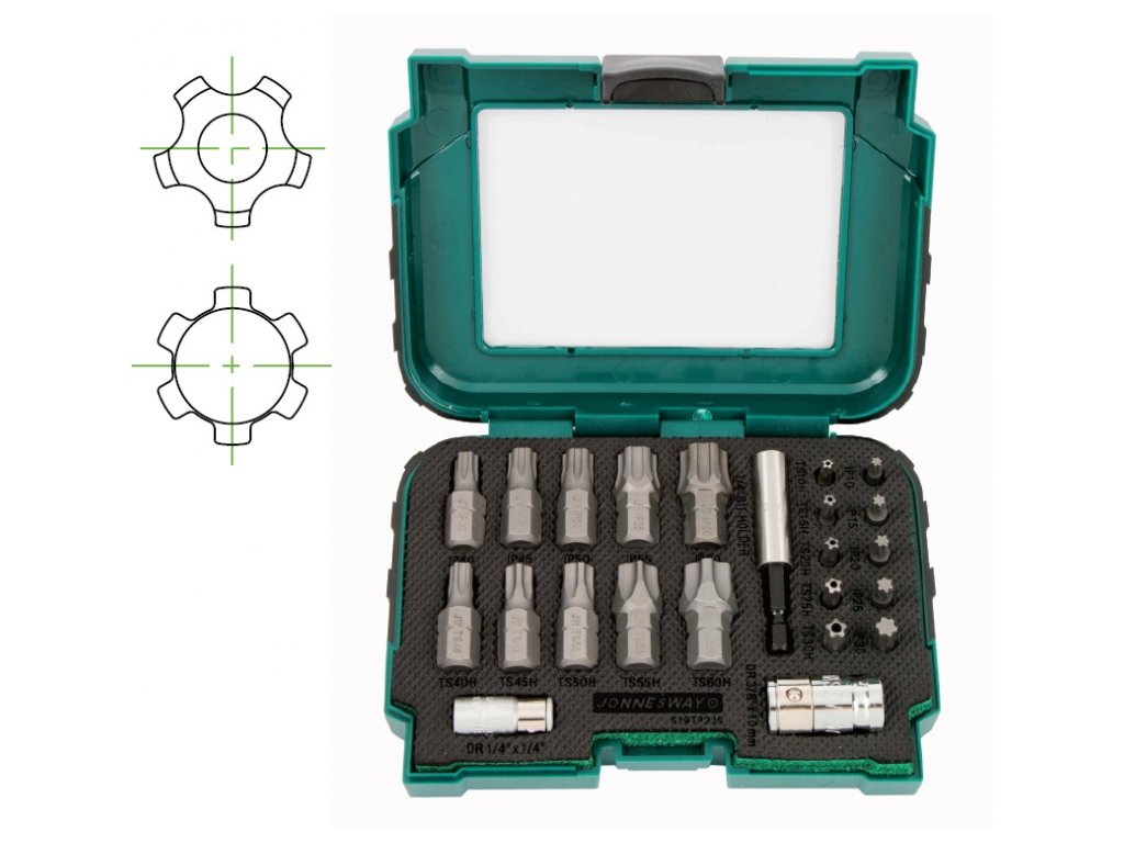Sada bitov 1/4 ", TORX päťcípa s otvorom a TORX-plus IP, 23 dielov - JONNESWAY S29TP23S