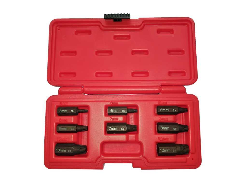 Profesionálna sada bitov na uvoľňovanie – povoľovanie poškodených (strhnutých) skrutiek s hlavou torx alebo imbus v praktickom kufríku.
