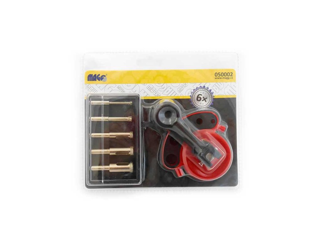 Sada dutých diamantových vrtákov, 4, 6, 8, 10, 12 mm, so šablónou, min. otáčky 2500 ot. / min - MAGG 050002.