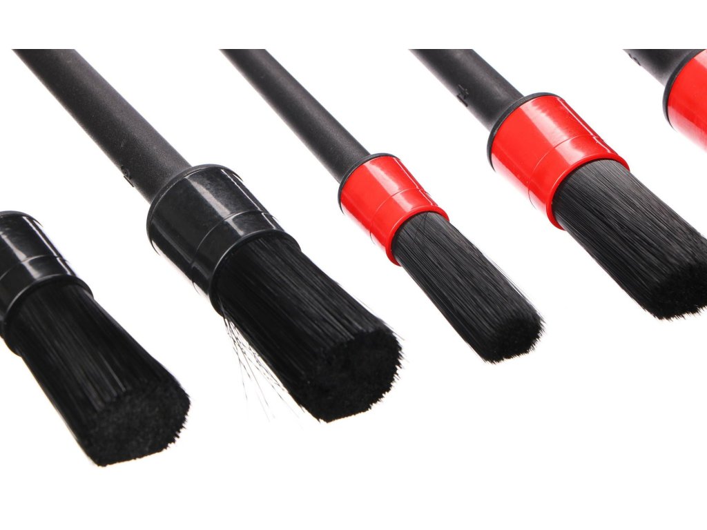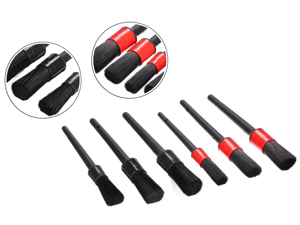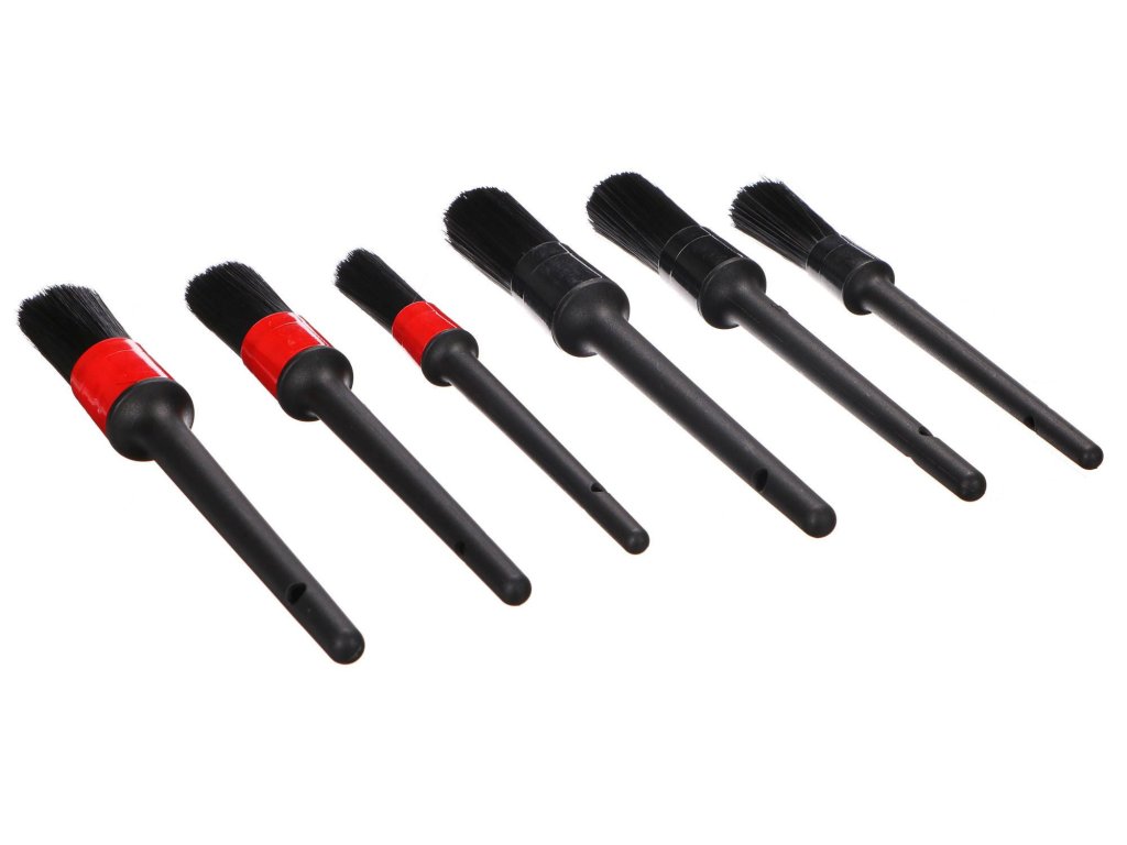 Šesťdielna súprava precíznych kefiek na čistenie auta CAR DETAILING BRUSH 6 na čistenie vášho auta. Súprava obsahuje 3 tvrdé a 3 mäkké čistiace kefy rôznych veľkostí, ktoré sa dostanú do záhybov vo dverách, stredovom paneli, mriežke ventilácie a pomôžu vám udržať vaše auto čisté. Tvrdosť kefiek je farebne označená - červená farba je mäkká a čierna tvrdá.Hlavné výhody: