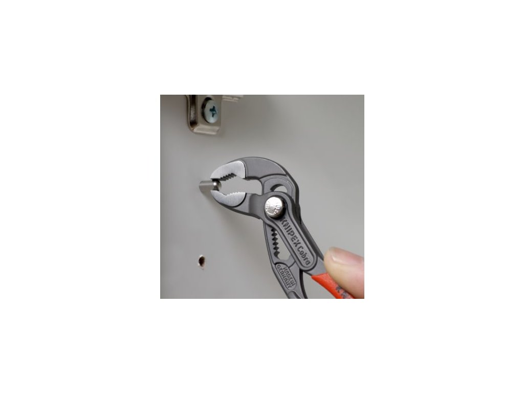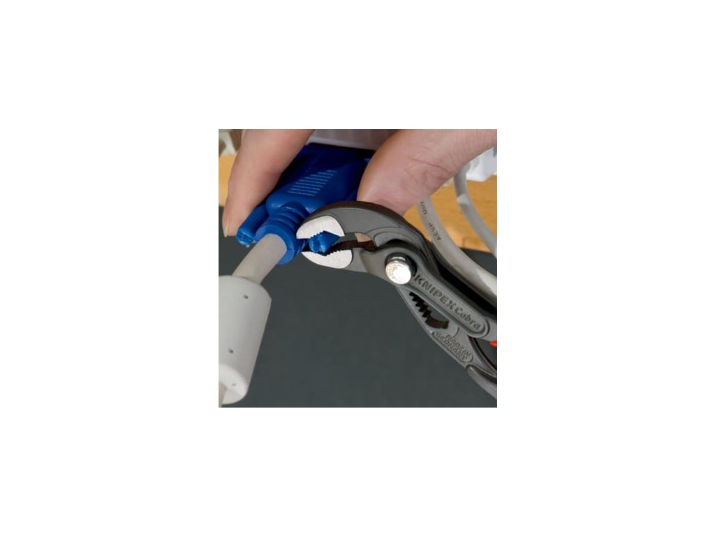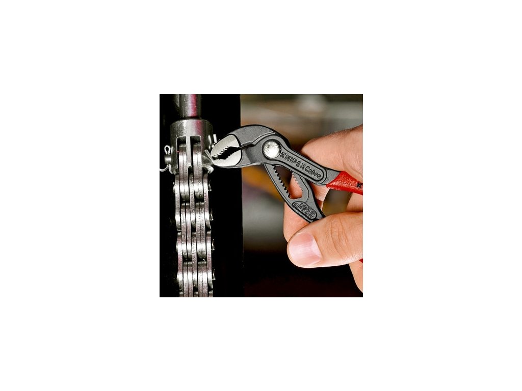 Kliešte majú ochranu rúk proti stlačeniu a vďaka spoľahlivej kolíkovej poistke sa kľúč samovoľne neotvára.