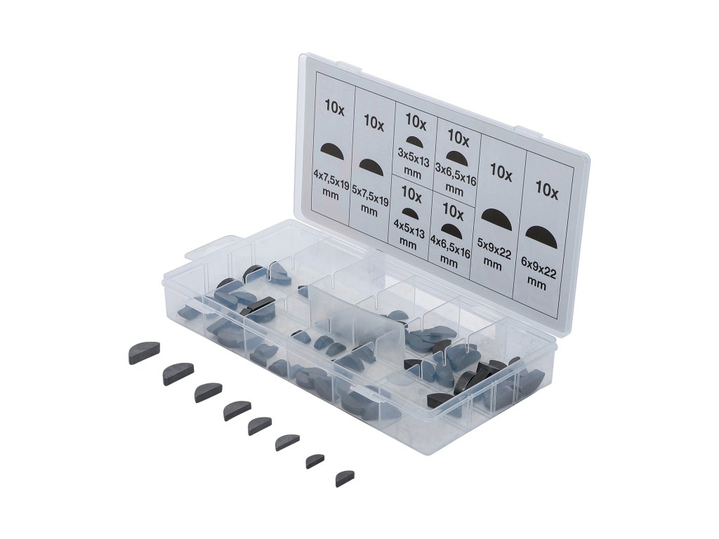 Rozmery: (po 10 ks) 3x5x13 mm; 4x7.5x19 mm; 4x5x13 mm; 5x7.5x19 mm; 3x6.5x16 mm; 5x9x22 mm; 4x6.5x16 mm; 6x9x22 mm.
