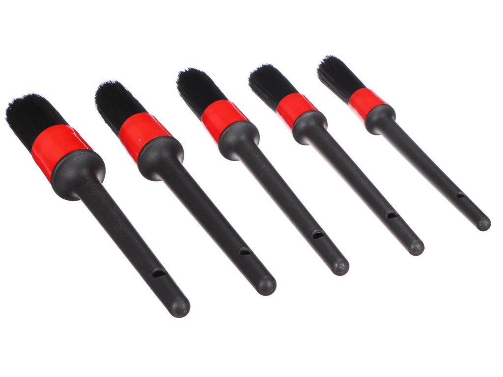 Sada mäkkých presných kefiek na čistenie automobilov, čierna a červená, nylon, rôzne veľkosti, 5 ks - SIXTOL SX1213.