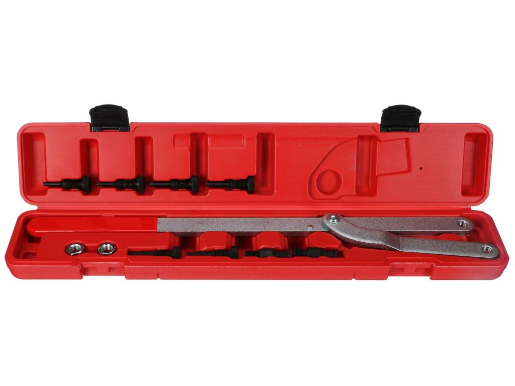 Praktická sada na napínanie kladiek je určená na opravy motorov a napínanie remeňov nielen v dielni, ale aj v domácej garáži. V súprave sa nachádza celkom 11 dielov, ktoré pokrývajú všetky dôležité priemery.