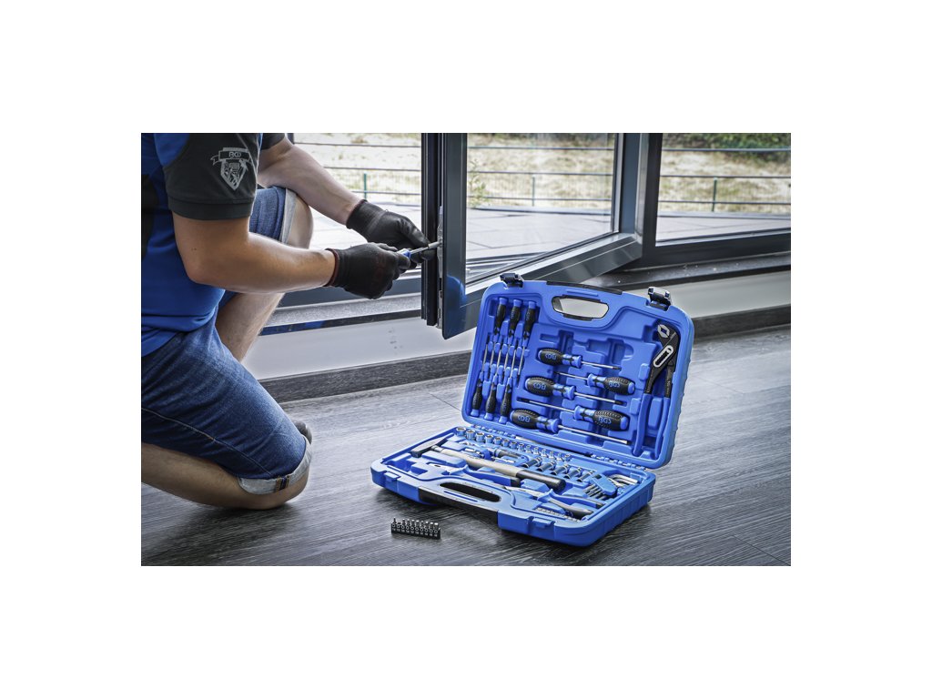 Praktická a pomerne rozsiahle zostavená súprava náradia pre profesionálnych remeselníkov, montážnikov, autoservisy a náročných hobby používateľov, ktorým záleží na kvalite ich vybavenia. Obsahuje všetko potrebné na prácu.
