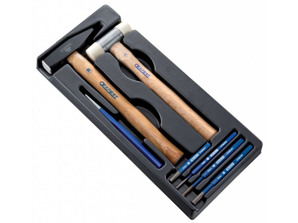 kladivo; palička s výmennými koncovkami 32 mm; priebojníky priemer 4, 6 a 8 mm; sekáč