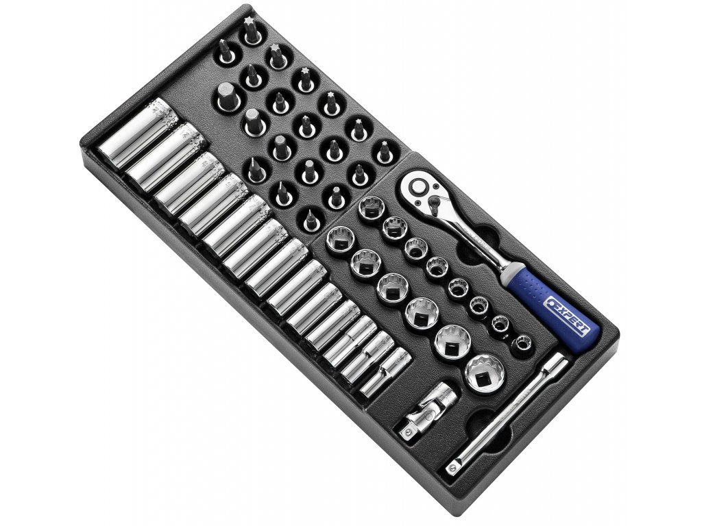 49dílná sada bitov a adaptéra E131701: 6x plochý bit 4; 4,5; 5,5; 6,5x2; 8 mm, 8x krížový bit Phillips PH1x2