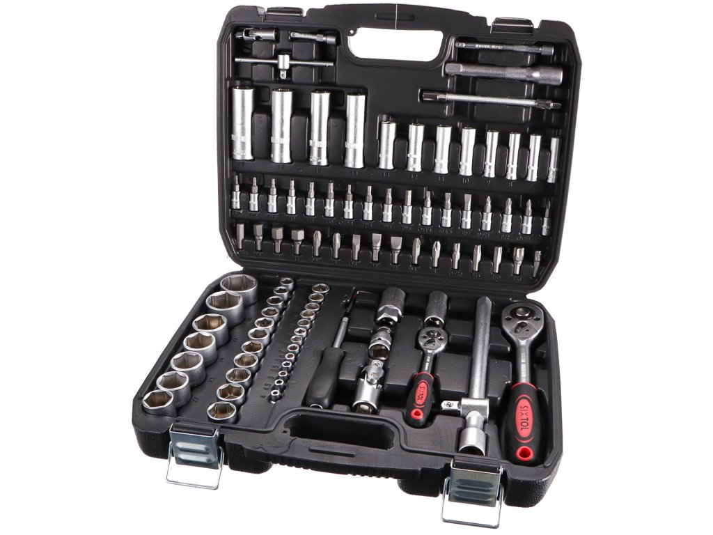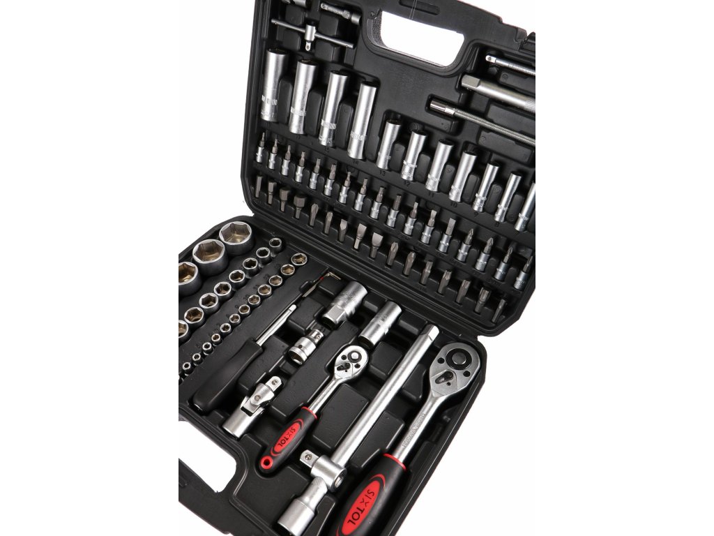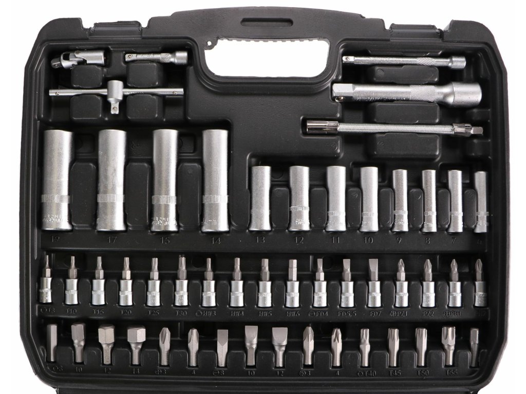 Súprava obsahuje celý rad nástrčiek, nástrčkových kľúčov, bitov, dve račne, univerzálnu rukoväť skrutkovača, kľúče na zapaľovacie sviečky a ďalšie užitočné nástroje.
