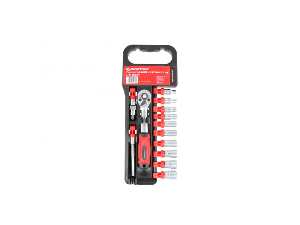 Sada nástrčných hlavíc 4-13 mm, 1/4" s račňou a predĺžením, 13 ks - QUATROS QS50005
