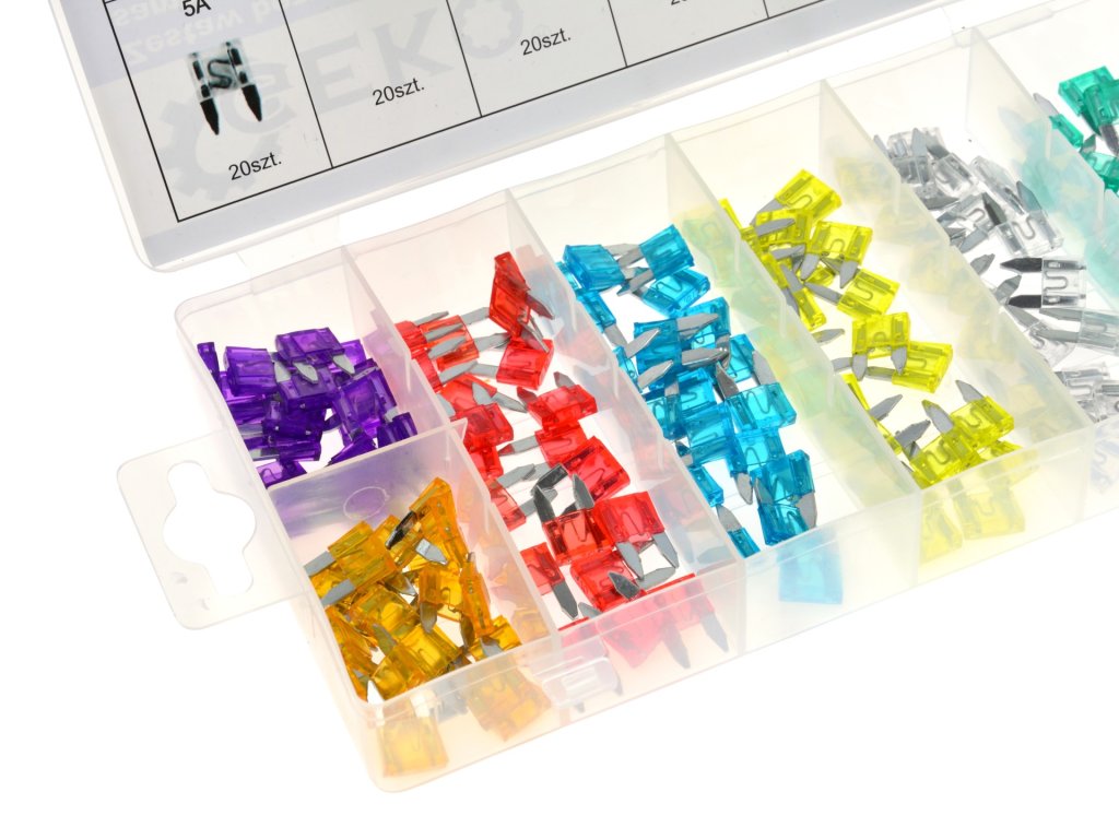Praktická sada nožových poistiek do auta s menovitým prúdom 3-30 A je vhodná pre väčšinu typov vozidiel alebo motocyklov.