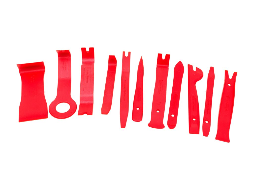11-dielna sada pák pre ľahkú demontáž spôn čalúnenia, tapacírov, bez ich poškodenia. Vyrobené z polyméru vystuženého sklenými vláknami, poskytuje dostatočnú pevnosť a zabraňuje poškodeniu čalúnenia.