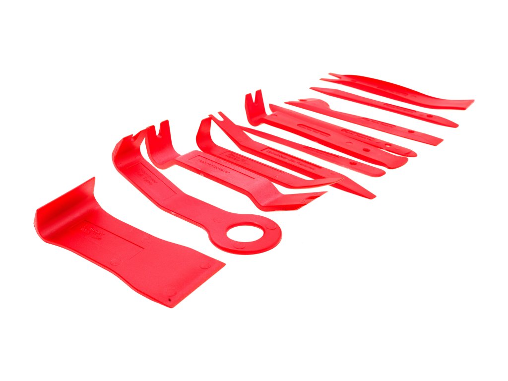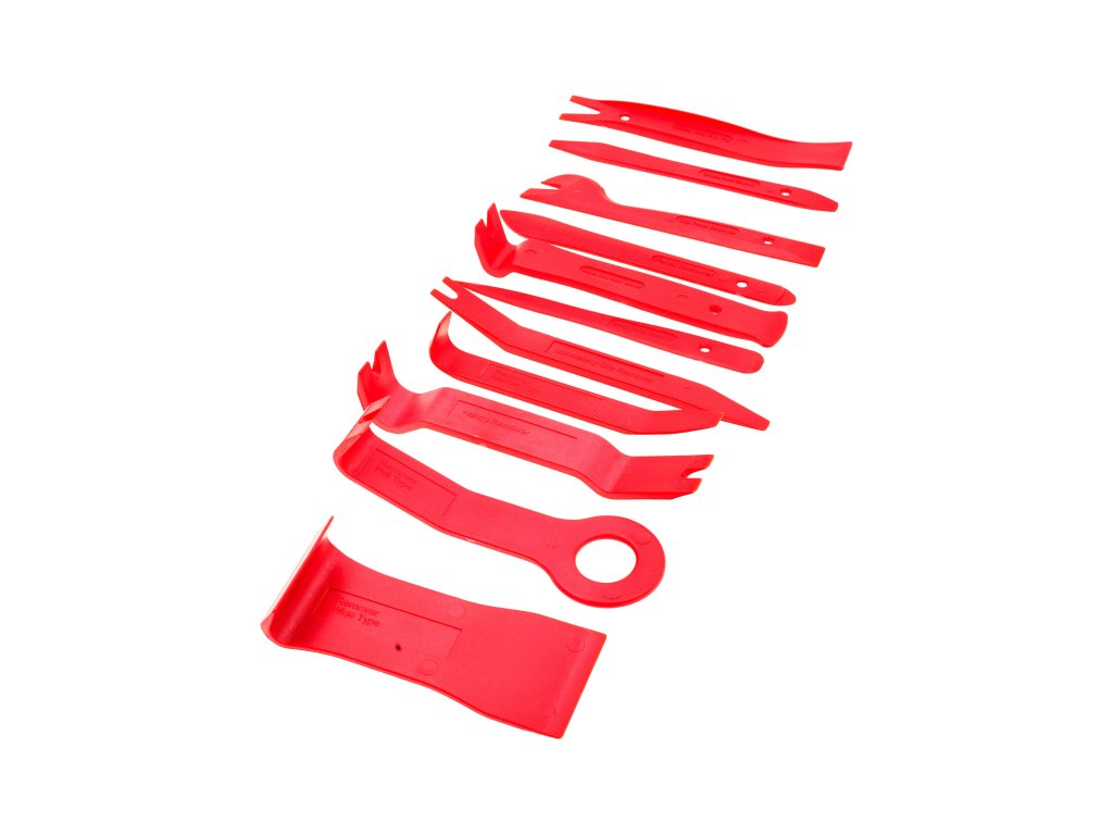 11-dielna sada pák pre ľahkú demontáž spôn čalúnenia, tapacírov, bez ich poškodenia. Vyrobené z polyméru vystuženého sklenými vláknami, poskytuje dostatočnú pevnosť a zabraňuje poškodeniu čalúnenia.