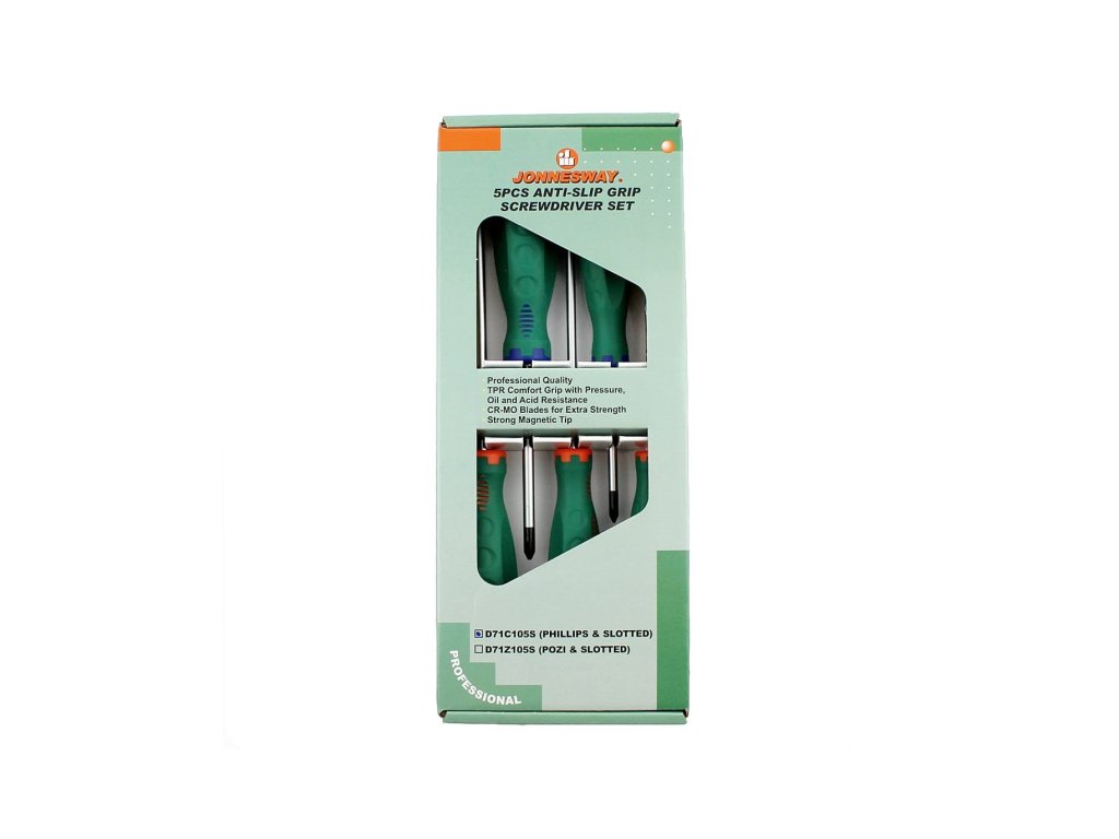 Sada profesionálnych skrutkovačov, plochých a krížových, 5 ks, ASG (Anti-slip Grip) povrchová úprava - JONNESWAY D71C105S: Calibri; mso-bidi-theme-font: minor-latin.