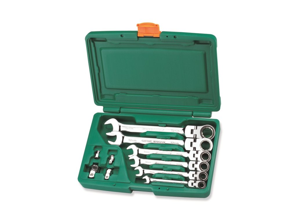 Sada račňových očkoplochých kľúčov s kĺbom a adaptérmi, 8-19 mm - JONNESWAY W66110S